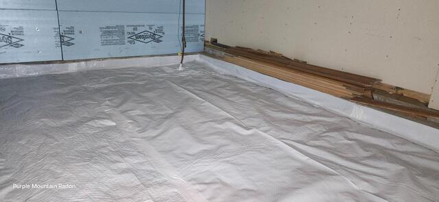 Colorado Springs home in real estate transaction had a crawlspace and garden level basement. A combination radon mitigation system addressed the crawlspace and garden level basement slab. This before and after was of the crawlspace.